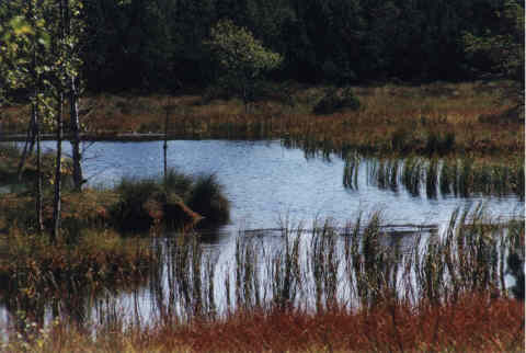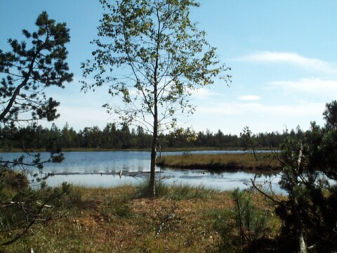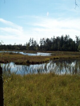 | Ein Bohlenweg führt über das eigentliche Moor.... | |